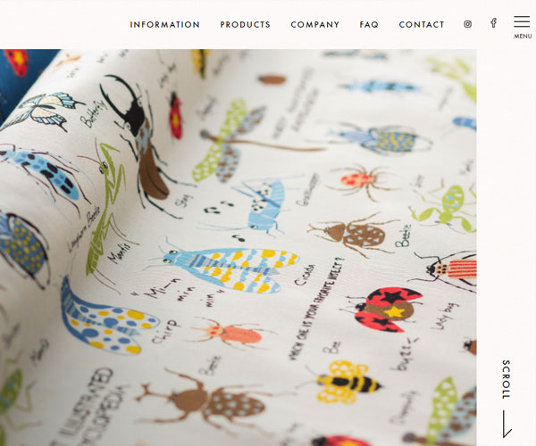 Cotton-kobayashi为布艺雕绣优美的花纹,网站是一个经典制作方式的电商网站布局