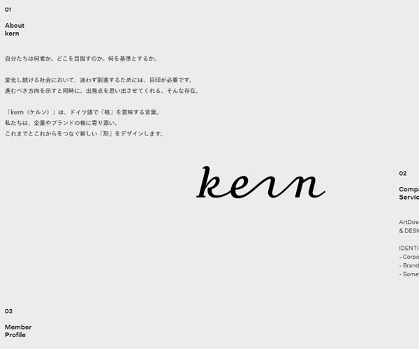 Kern是一个提供核心设计平台的网站,低沉的灰色色调,独特的文字排版构思,